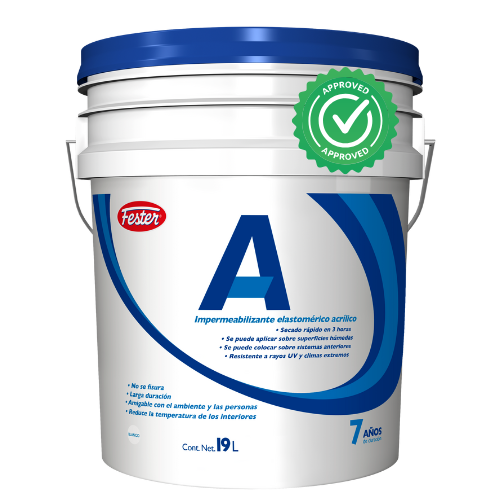 FESTER® A es un impermeabilizante elastomérico que debido a su tecnología de rápido secado, permite hacer la impermeabilización completa en un solo día. Es elaborado a base de resinas acrílicas, pigmentos inorgánicos, agregados minerales y aditivos especiales que le proporcionan secado rápido, excelentes características de impermeabilidad, resistencia a rayos UV, adherencia en superficie húmeda, etc.